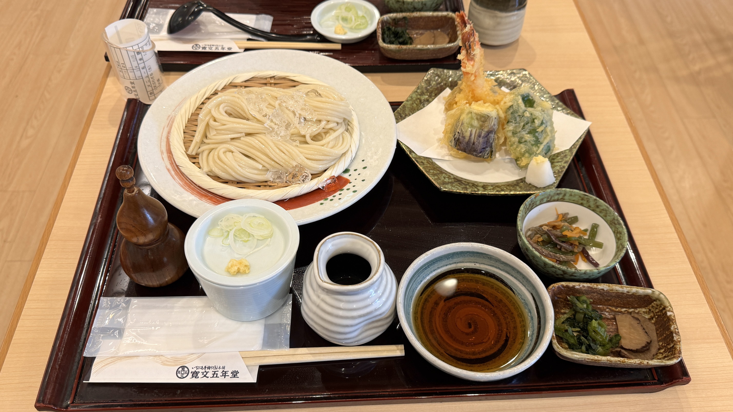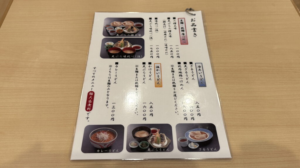仕方ないので、生麺の「冷たい天ざるうどん」と生麺の「温かいかけうどん」の2つを注文。