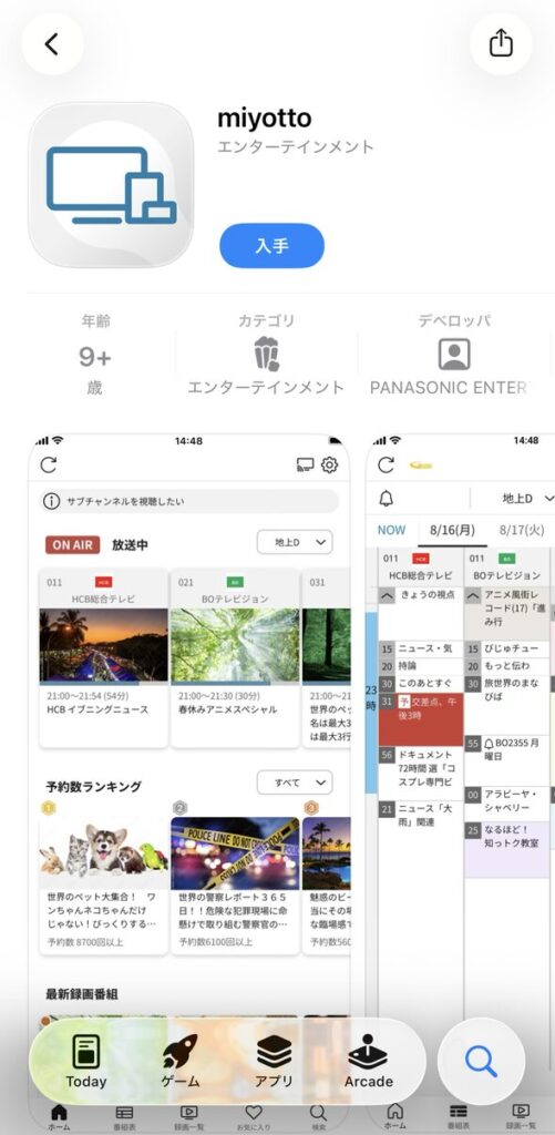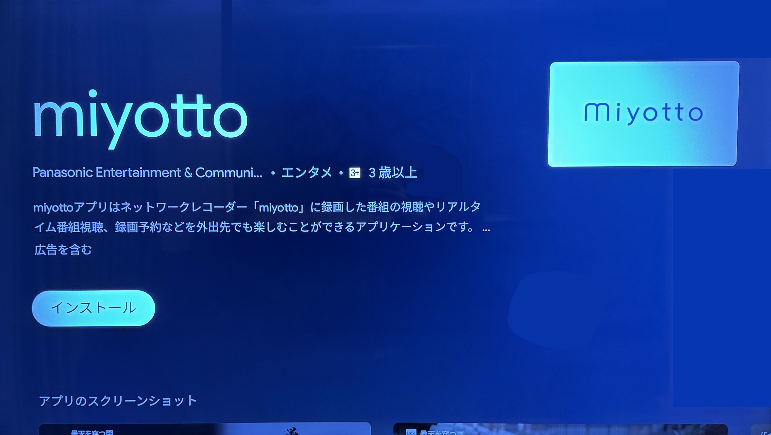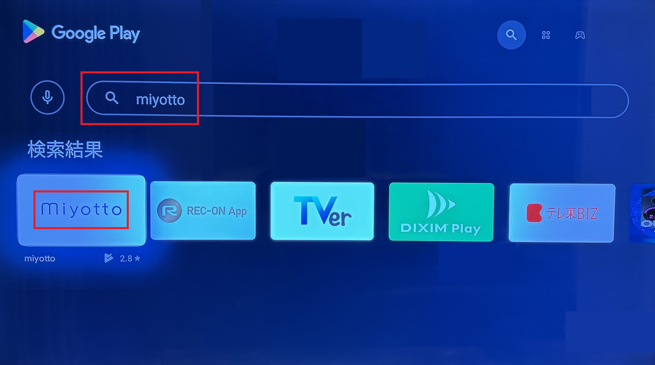 まずは、TVで「miyottoアプリ」をダウンロードする為に検索。