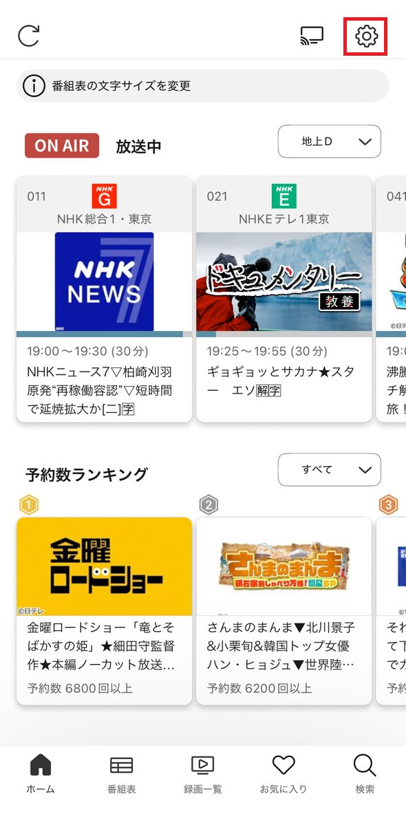 ↑ホーム画面の右上にある歯車マークから、色々と設定内容を見てみる。