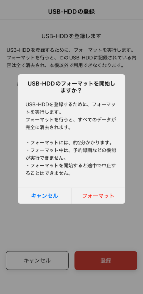 ↑フォーマットが完了すると、赤枠の表示が「1」になった。