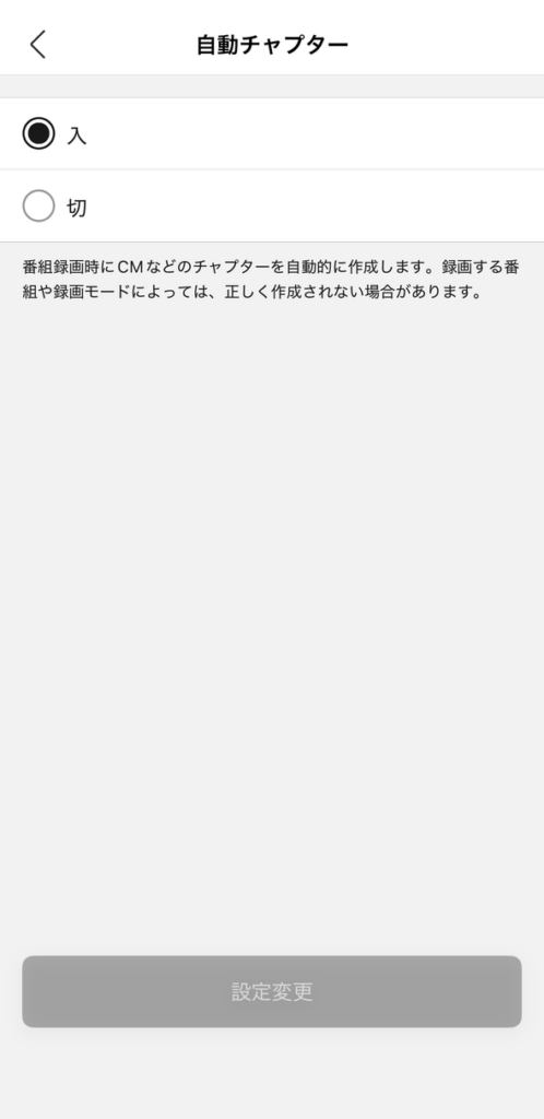 ↑「自動チャプター」がデフォルトで「切」になっていたので、「入」に変更。