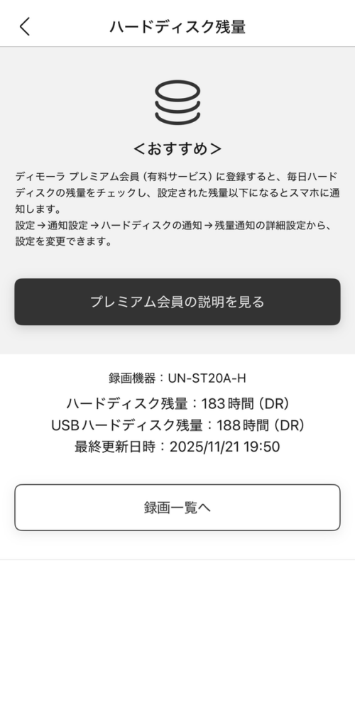 ↑アカウントは「CLUB Panasonic」と連携しているので、TVアプリとスマホアプリの設定が終わった後に、「Dimora」のサイトでログインすると、すでに「miyotto UN-ST20A」が登録されていた。