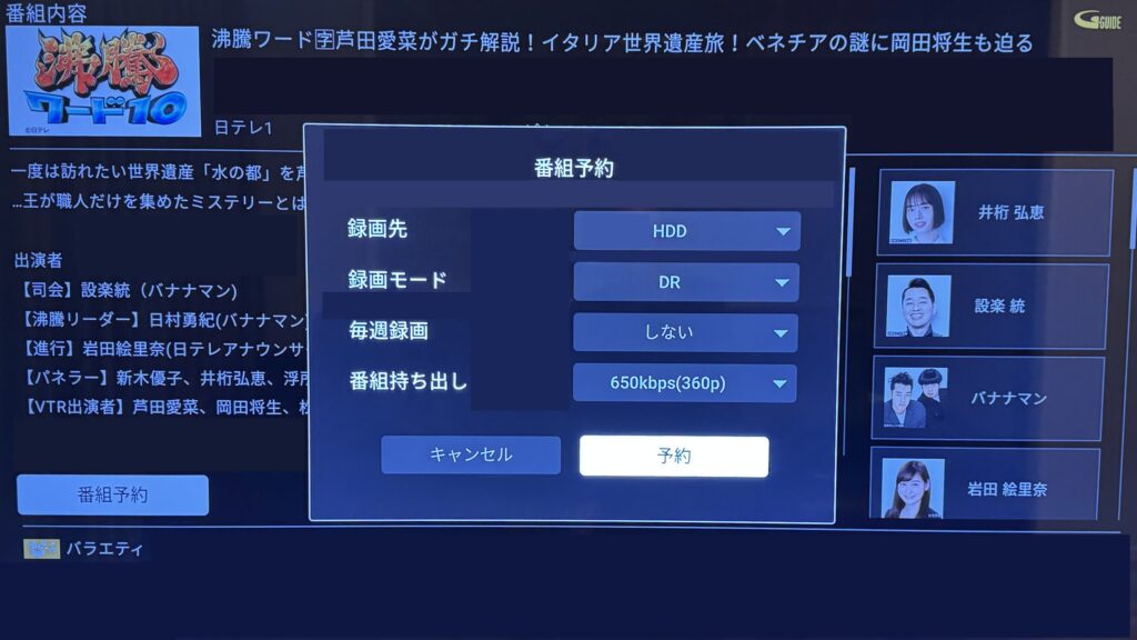 SONYを使っていたのでPanasonicのDIGAは初めてだが、アプリは感覚的に使えるので、色々とイジってみる。