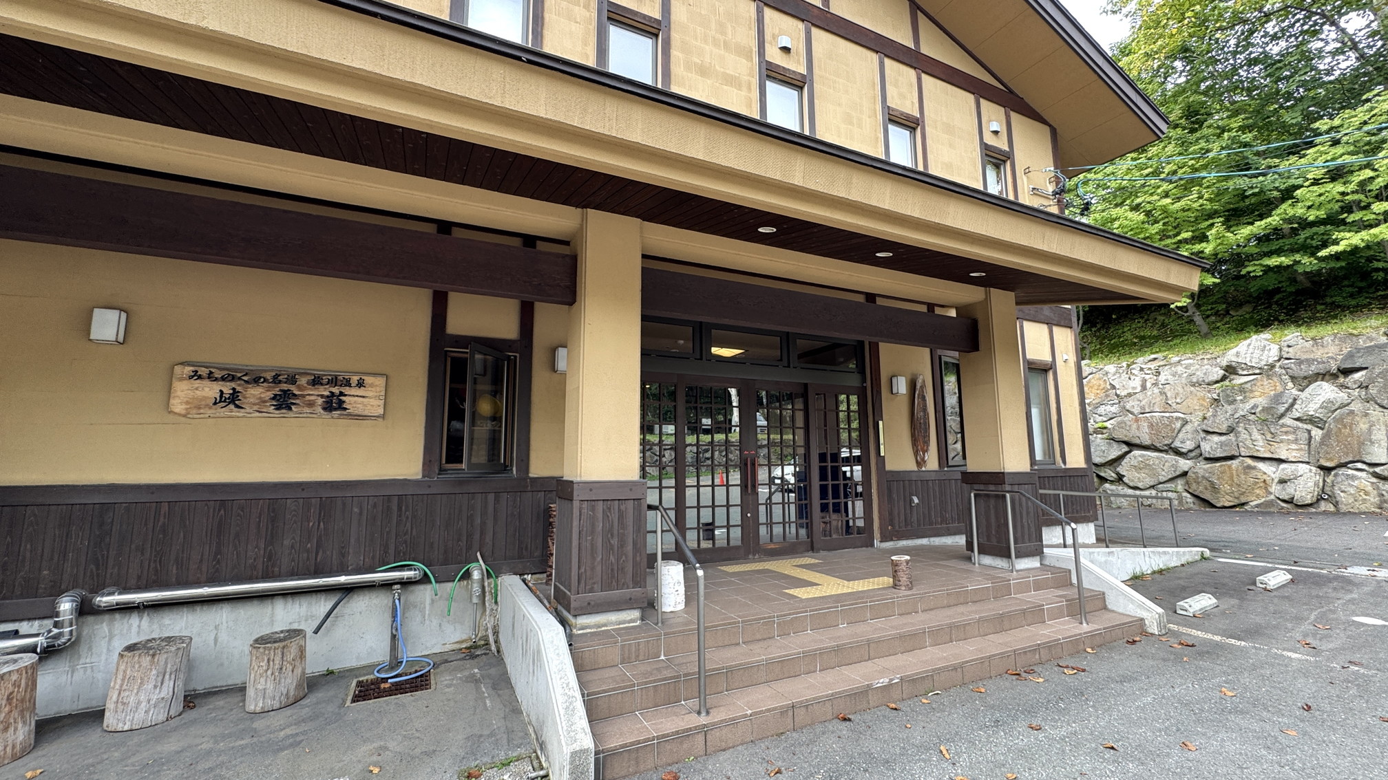 松川温泉には3件の宿泊温泉施設があったが、「松楓荘」は2023年12月にコロナの影響で廃業してしまい、現在はこちらのホテル風の「峡雲荘」と湯治宿風の「松川荘」の2軒のみなってしまった。