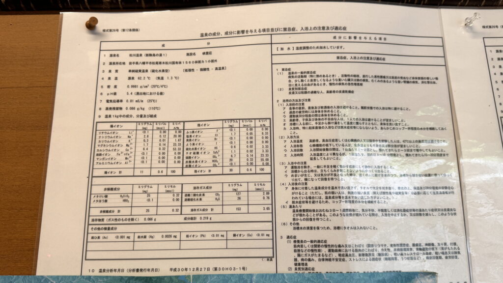 - 源泉名 : 松川温泉(新駒鳥の湯1)