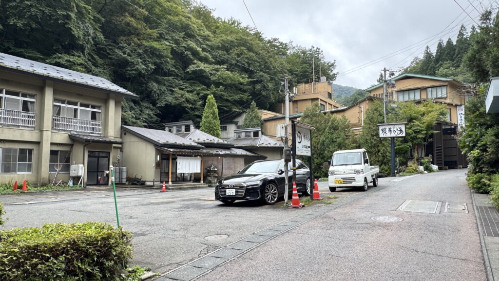 「精華の湯」に着いたけど、駐車場が目の前にあった・・・。
