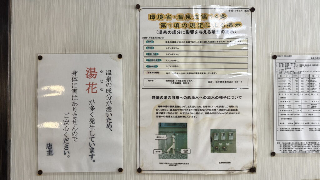 HPを見ると、「源泉掛け流し。豊富な湯量により循環装置無しの流しっぱなし、毎日閉店後、お湯を入れ替えていますので、いつでも透明感のあるお湯を楽しんで頂けます。」と。
