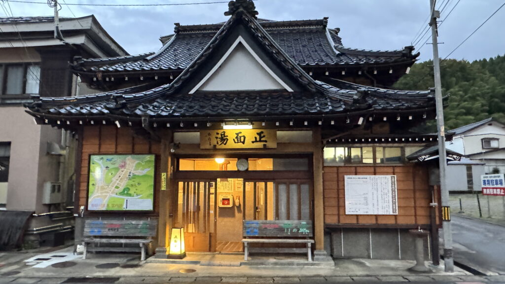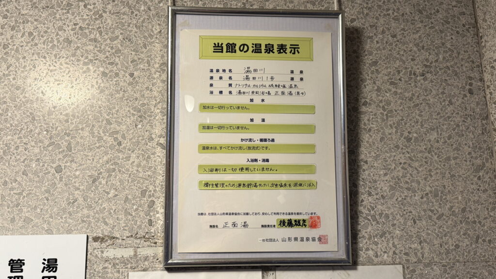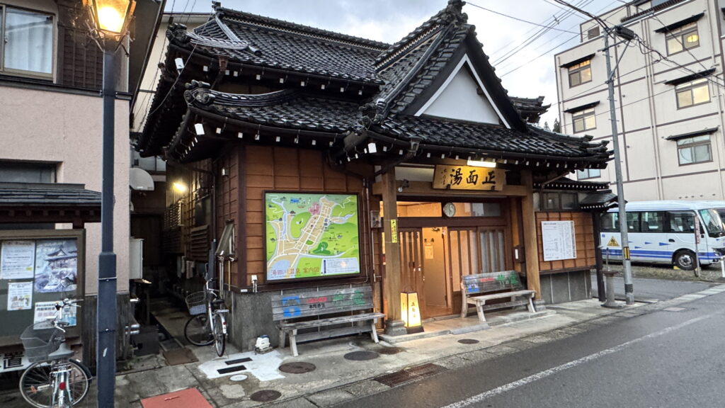 湯田川温泉には、こちらの「正面湯」と「田の湯」のどちらも源泉は同じな2軒の共同浴場がある。