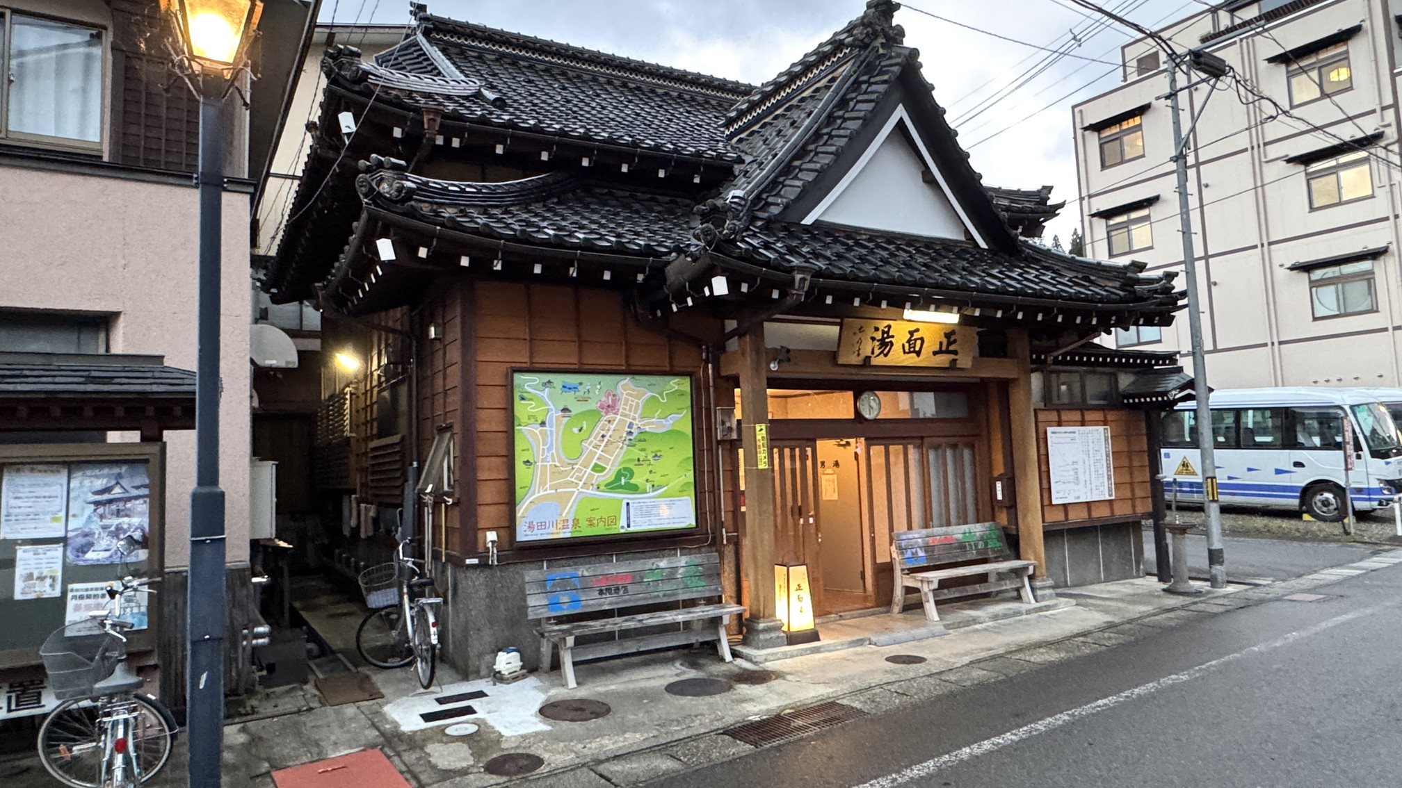 開湯は西暦712年と、今から約1300年前という、山形県鶴岡市にある湯田川温泉の共同浴場の「正面湯」に行ってきた。