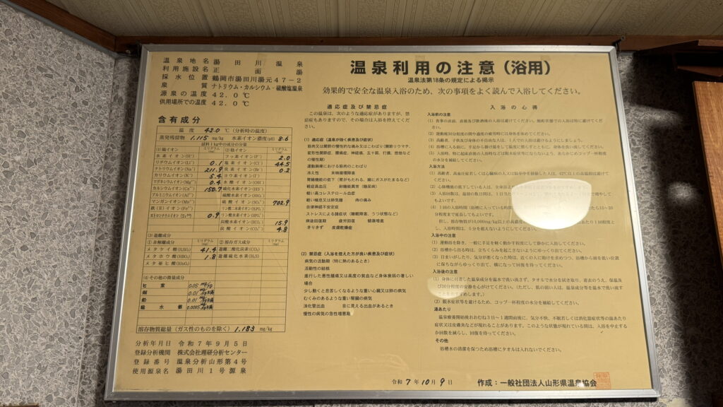 ↑「湯田川温泉」のHPにあった新しい成分表。