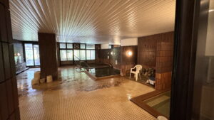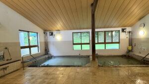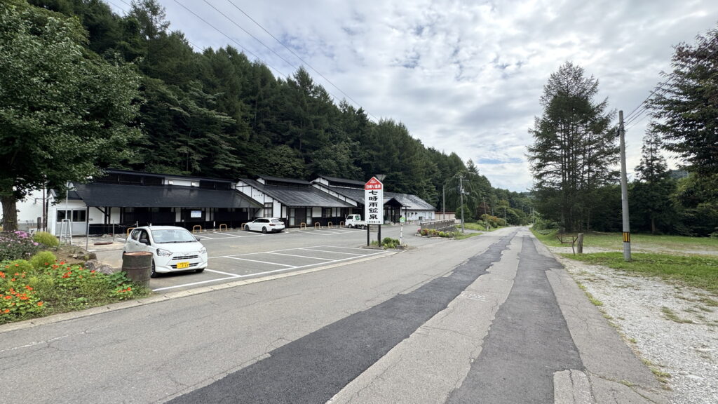 源泉温度が低いので、温泉ではなく「冷鉱泉」の「七時雨憩の湯」に到着。