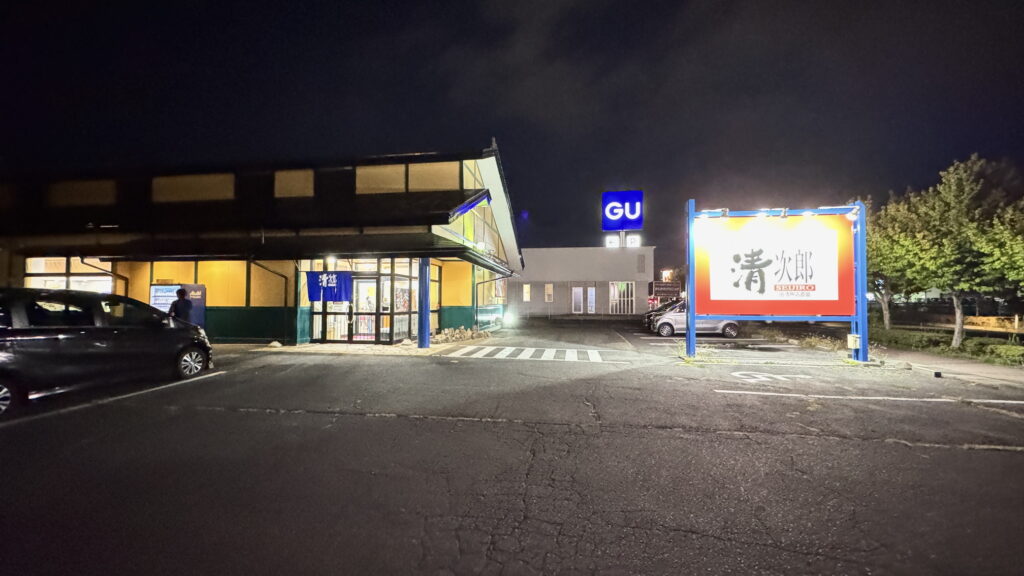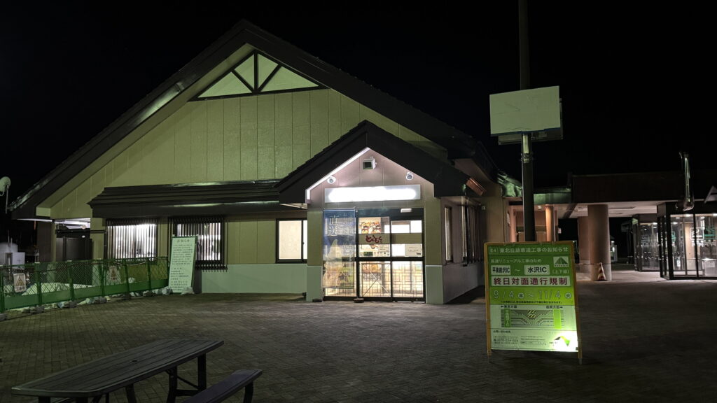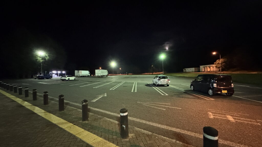 明日は、日帰り入浴の時間が限られている温泉施設2軒に行くために、1軒目の温泉施設近くのSAで車中泊。