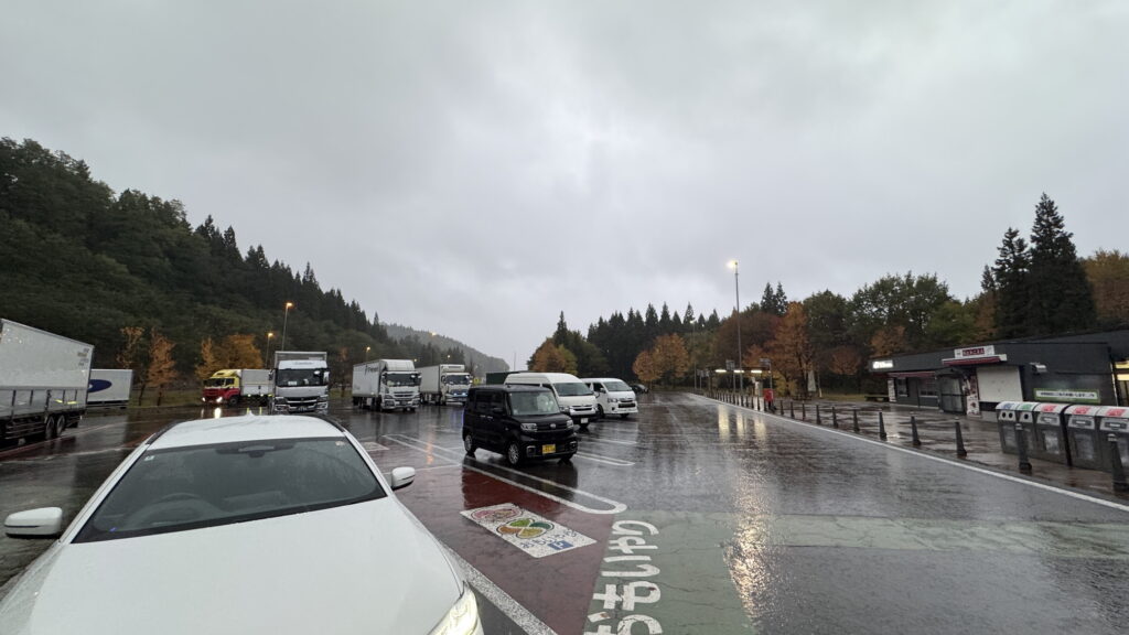 後部座席は、昨日の車中泊の状態のままなので、足を延ばして横になって仮眠。