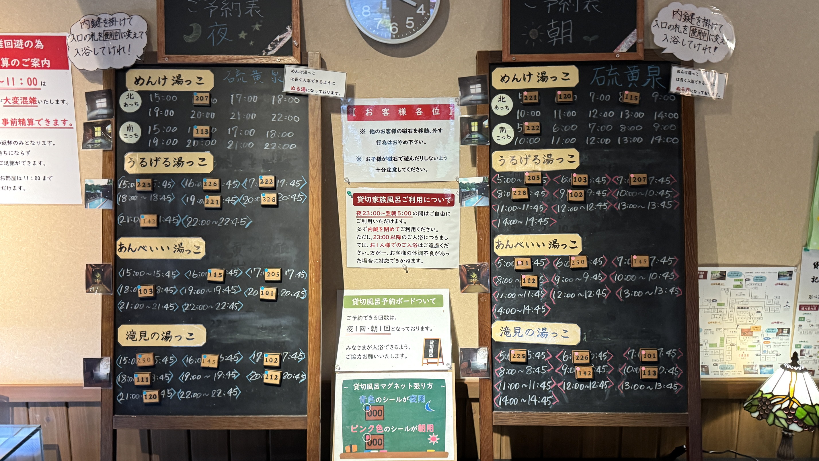 あらかた宿の説明が終わったら、貸切風呂の予約。