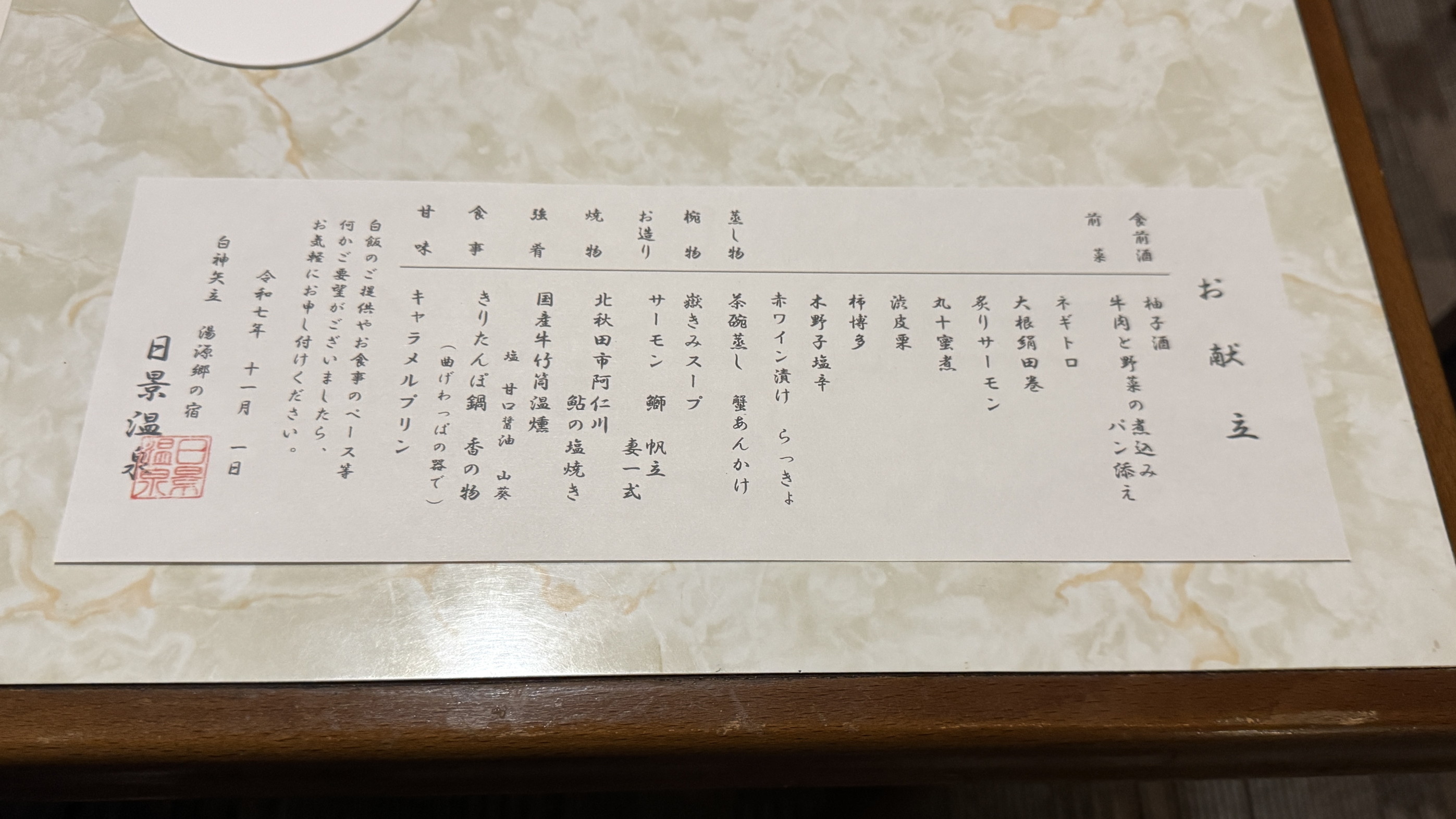 夕食までゆっくりとお湯を楽しんだところで、第二の楽しみの夕食。