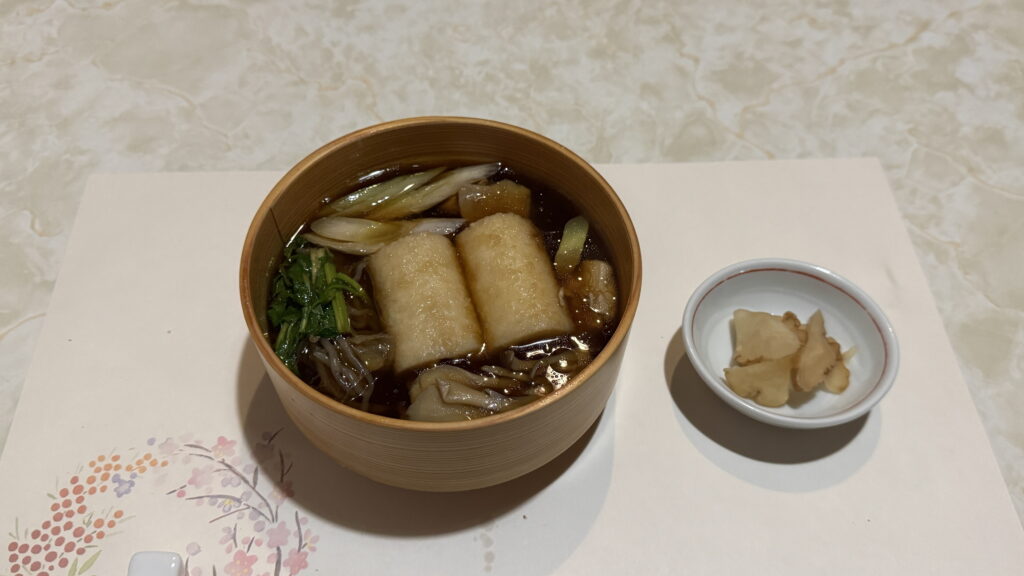 色々な出汁が出ており、きりたんぽがホントに美味しいし、「いぶりがっこ」が良い箸休め。