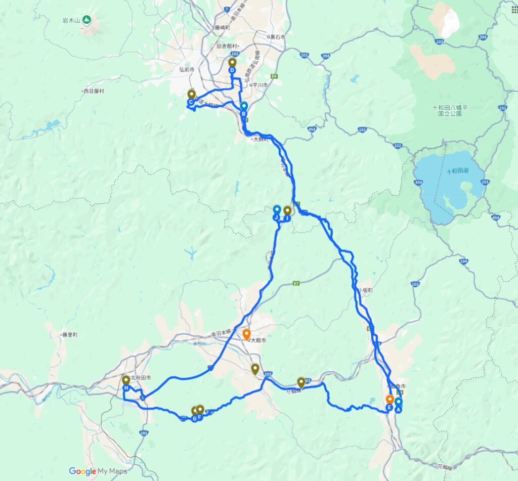 今日は弘前の日帰り温泉施設に入り、鹿角市に戻ってB級グルメの「ホルモン鍋」を食べ、北秋田市内の日帰り温泉施設に入り、宿泊する「日景温泉」に早めに到着する行程。